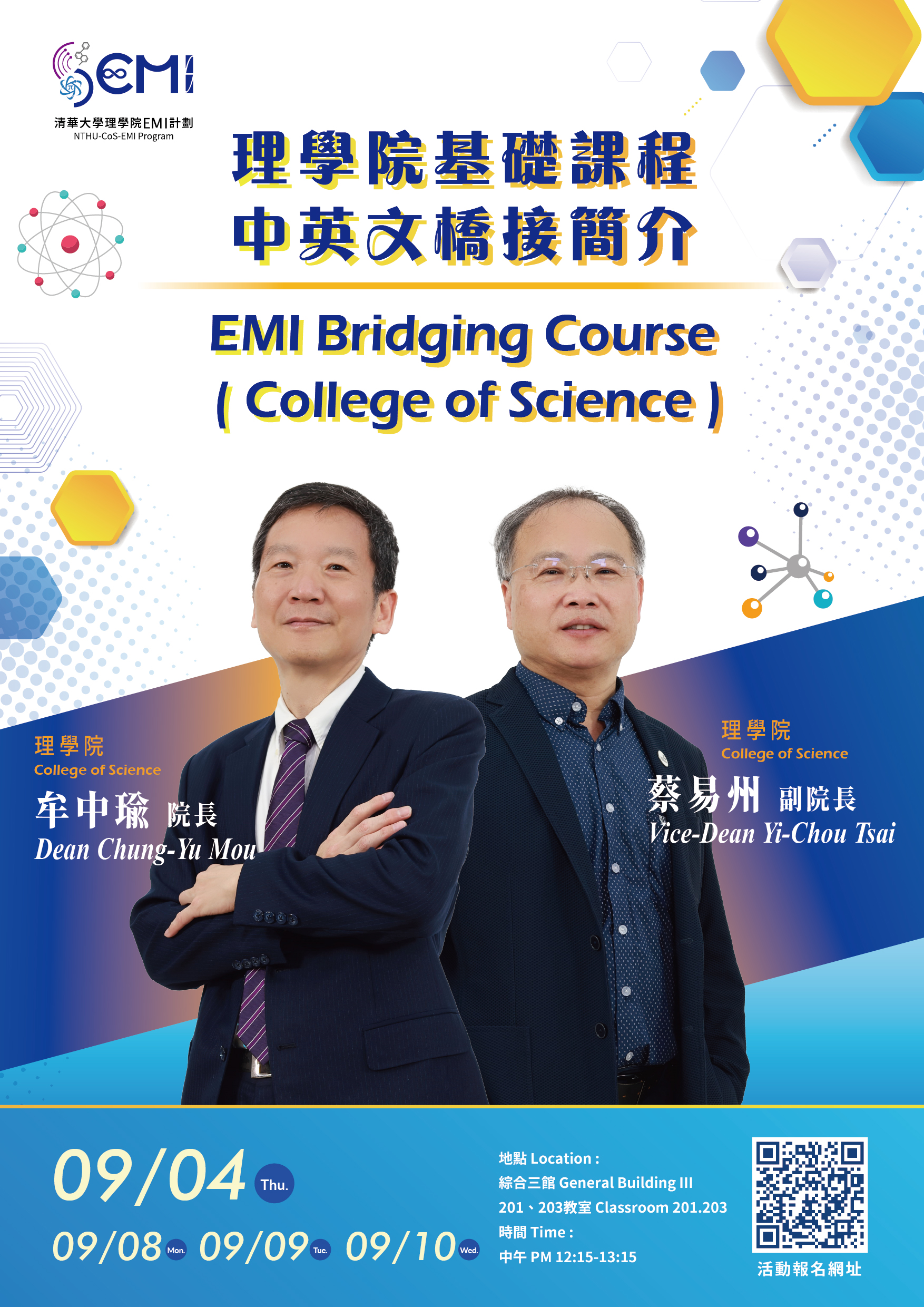 9/4(四)12:15,綜合三館201、203,專業課程橋接簡介