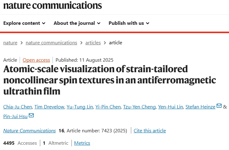 Atomic-Scale Visualization of Strain-Tailored Noncollinear Spin Textures in an Antiferromagnetic Ultrathin Film (Dept. Physics / Assoc. Prof. Pin-Jui Hsu)